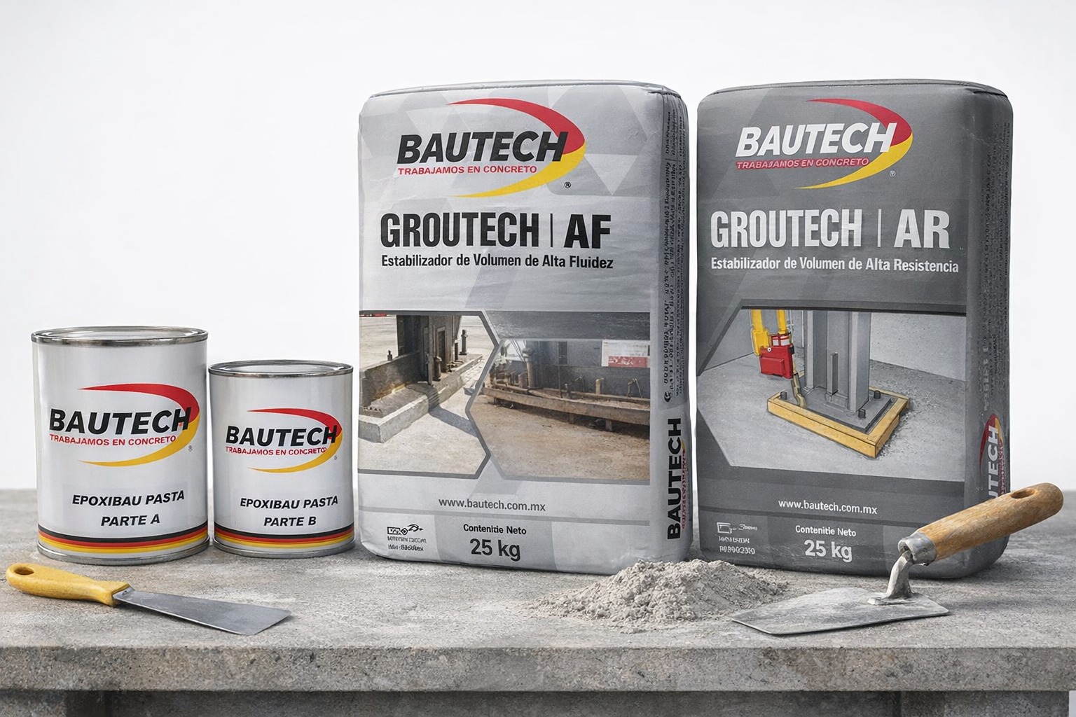 Opciones para relleno, nivelación, anclaje, reparación y adhesión de elementos estructurales y piezas metálicas, con alta resistencia y gran adherencia.